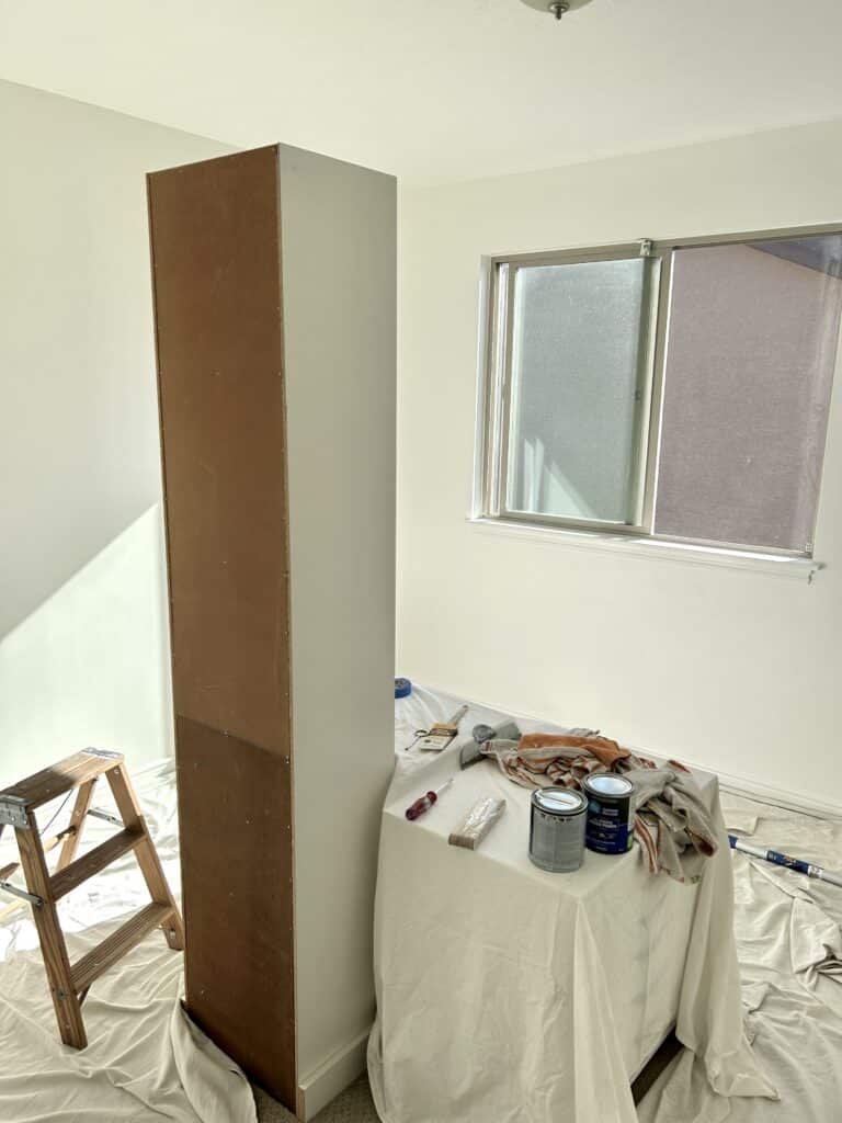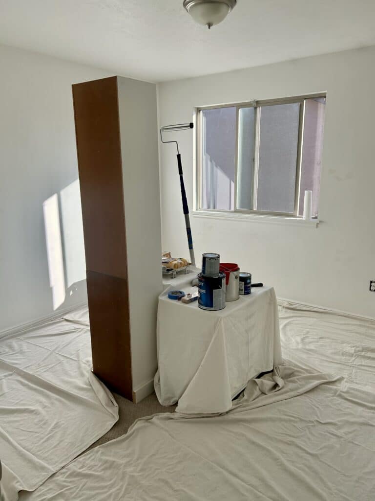 And on the far end of the room, there’s fabric storage and the record player. I’m debating adding a TV over there, too, but the decorating budget is maxed out for a while.