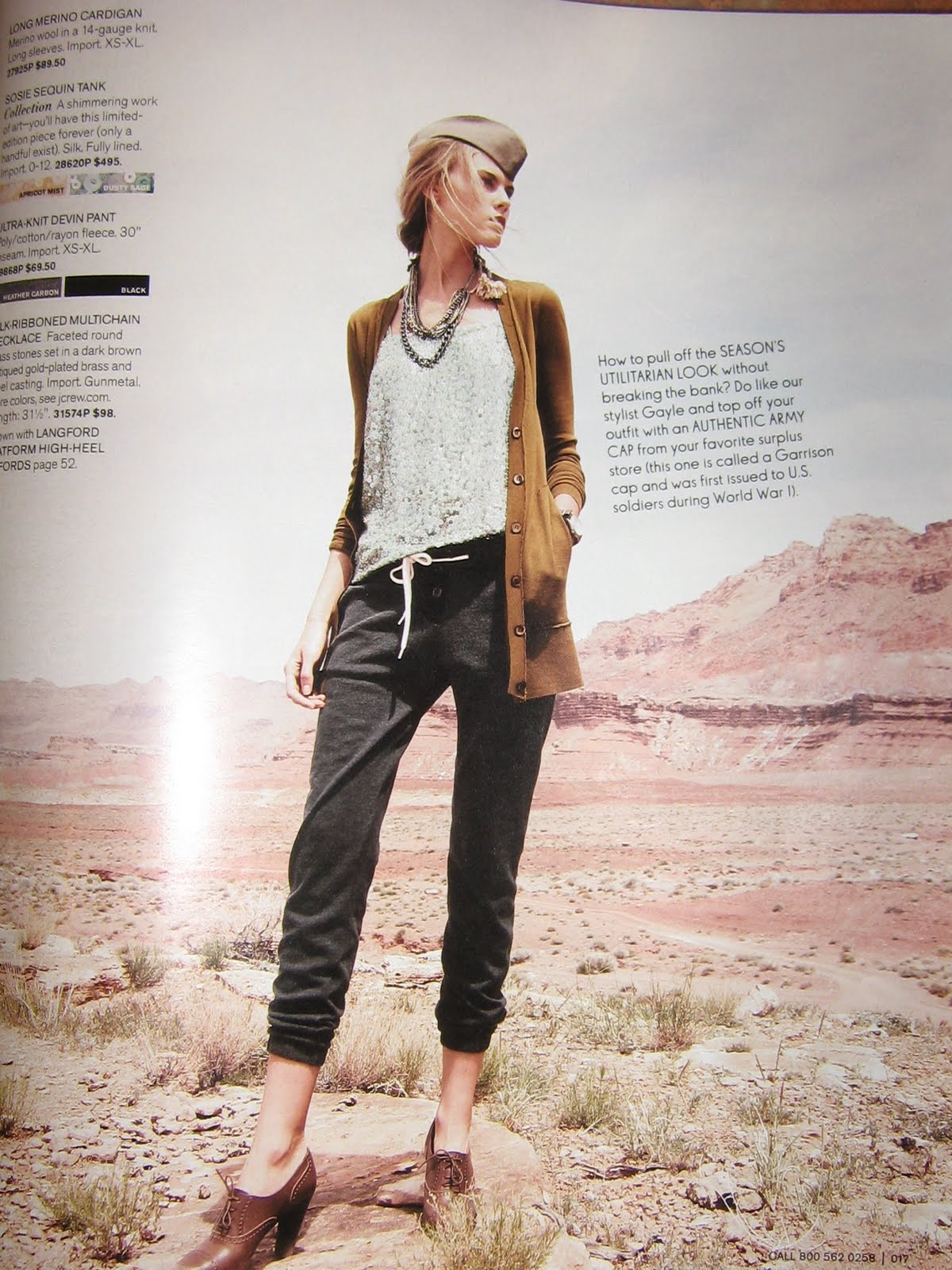 Now you’re hanging around with a suit-clad Jesus and wearing Hammer sweatpants? With an Army hat? This…this isn’t the J. Crew I used to know. I know I’ve matured and evolved in three years, but I haven’t abandoned everything I value, like colored peacoats and bright pretty flats.