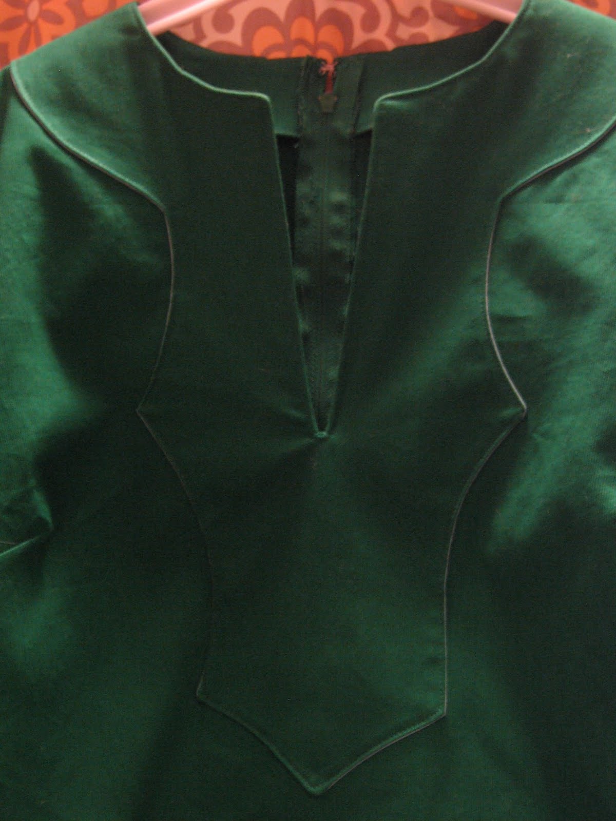 But it’s wearable, and it’s done, and I do like this part of the pattern a lot–that decorative piece around the slit has a backing of sky blue, for just a little contrast:
