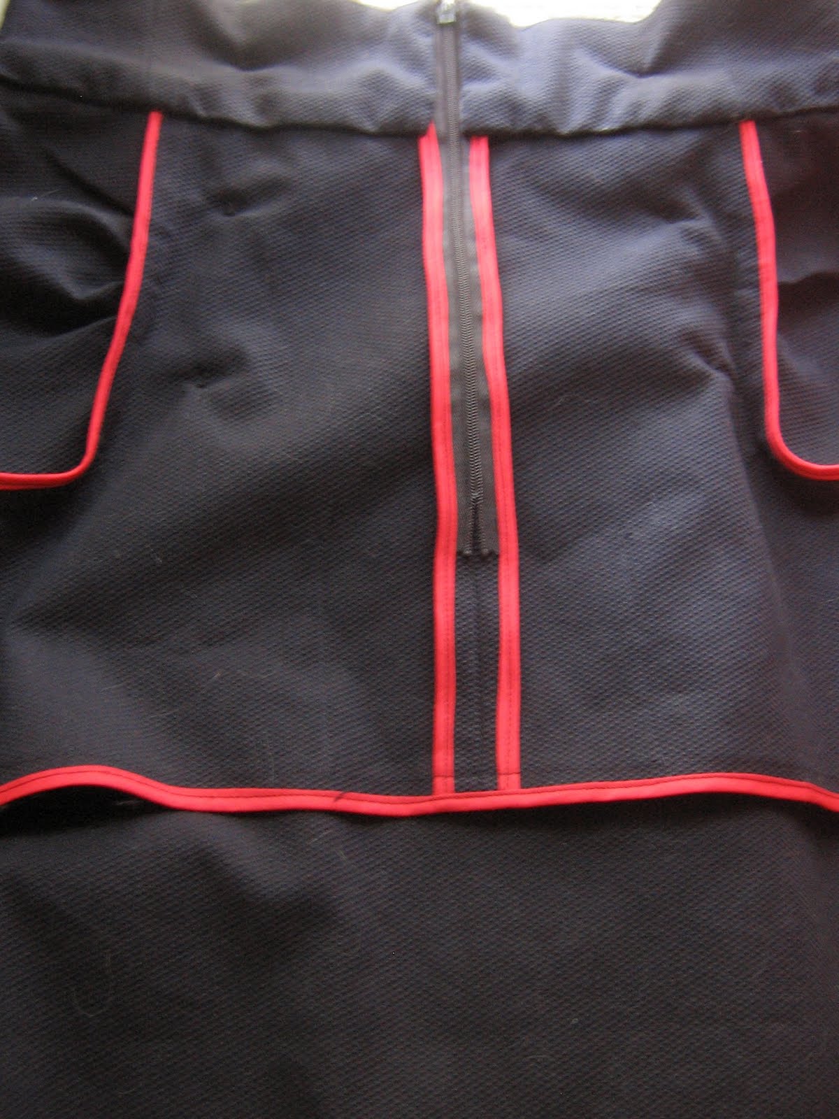 It was hard enough to figure out how to assemble this, let alone make a lining for it, so I got all fancy on the seam finishes again. This front panel unbuttons to reveal a zipper and a pocket: