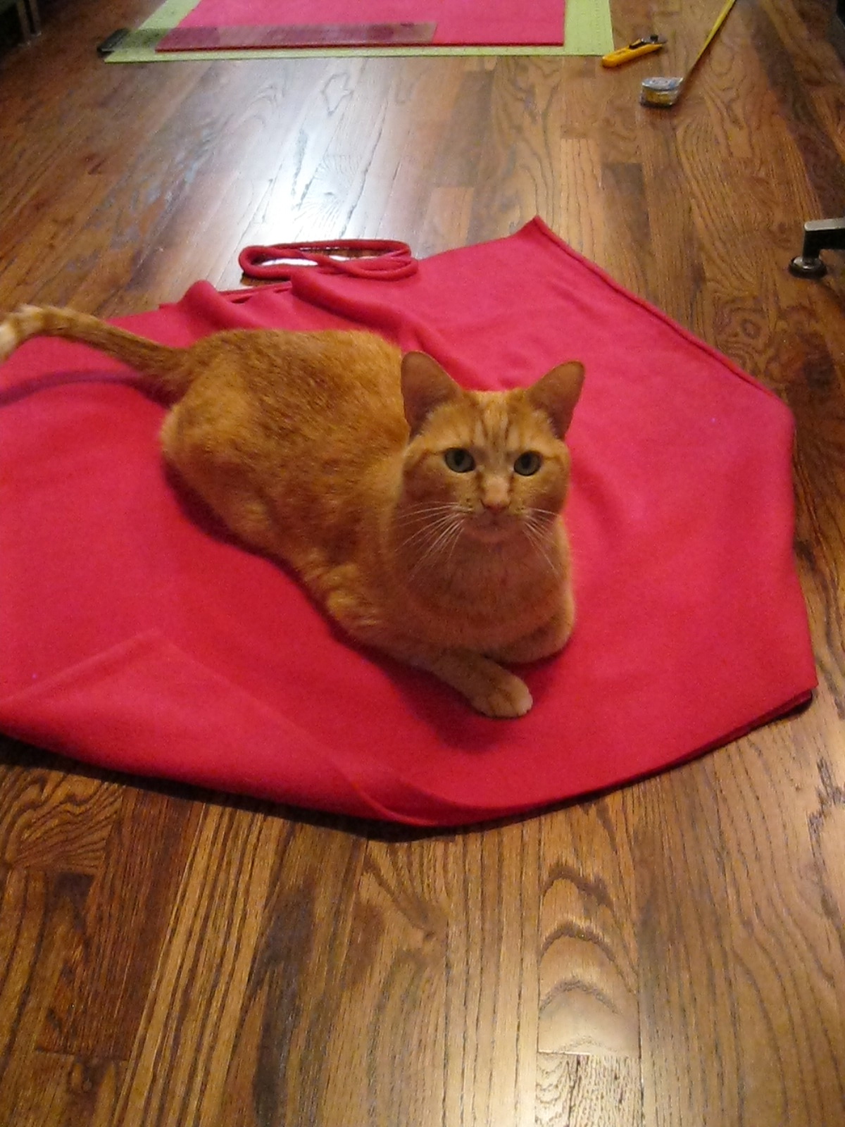 And 4 out of 8 kitty blankets are cut out (but not fringed). Maybe my helper needs to be a little more helpful: