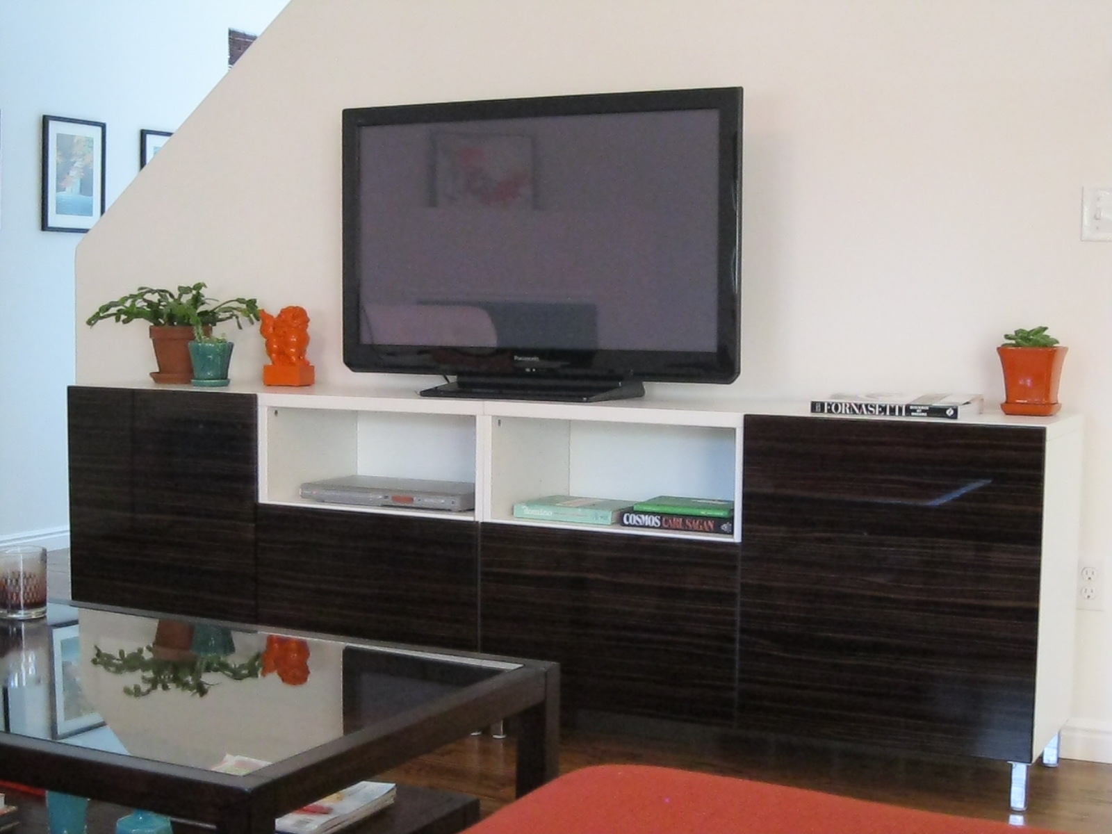 The TV stand is IKEA–not bad for Sweden, right? I have to thank my dad for braving IKEA with me, hauling everything around, and helping me assemble. Thanks, Dad!